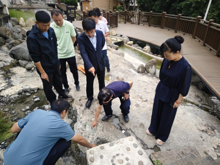 调研组一行先后到邦腊掌监测点、龙山湖防震减灾主题公园申报项目地进行实地调研检查,在邦腊掌监测点仔细查看仪器运行,了解观测环境、设备一起运行、询问数据采集、传输及维护等情况,还实地考察阴阳泉、间歇泉等特色泉眼;在龙山湖减灾主题公园申报项目地,听了县地震局的详细汇报。