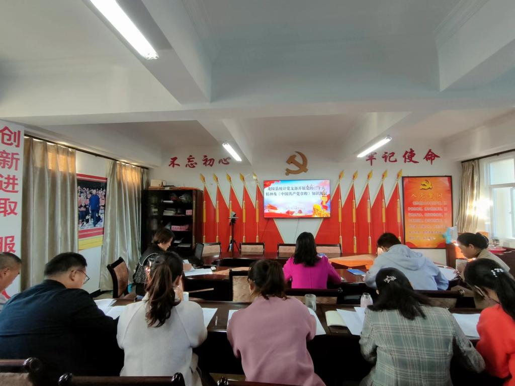 为进一步推进统计局全体干部职工深刻学习好、领会好、贯彻好党的二十大精神,掀起学习贯彻党的二十大精神热潮,帮助全体干部职工进一步吃透精神实质,把握核心要义,形成“以考促学 以学促用”的浓厚学习氛围。近日,县统计局党支部在11月主题党日活动上,组织党员干部开展了党的二十大精神及《中国共产党章程》知识测试。