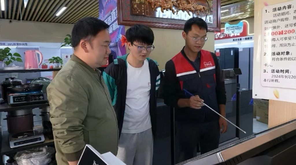 “从国家‘以旧换新’政策实施以来,我们严格按照相关规定开展‘以旧换新’补贴工作,我们客流量增加了很多,销售额同比去年增长了50%左右。目前,冰箱、电视、洗衣机比较受客户的欢迎。”家用电器经销商廖焕发开心地说道。在廖焕发店中,正在线上挑选洗衣机的李先生今年已经是第二次购买家电了,他一边挑选一边说:“现在买家电是非常地方便了,我可以在线上看好自己喜欢的家电,等到线上做活动的时候就可以享受双重优惠。到货之后,商家就会直接帮我送到家,安装好,不仅实惠,也很方便。”