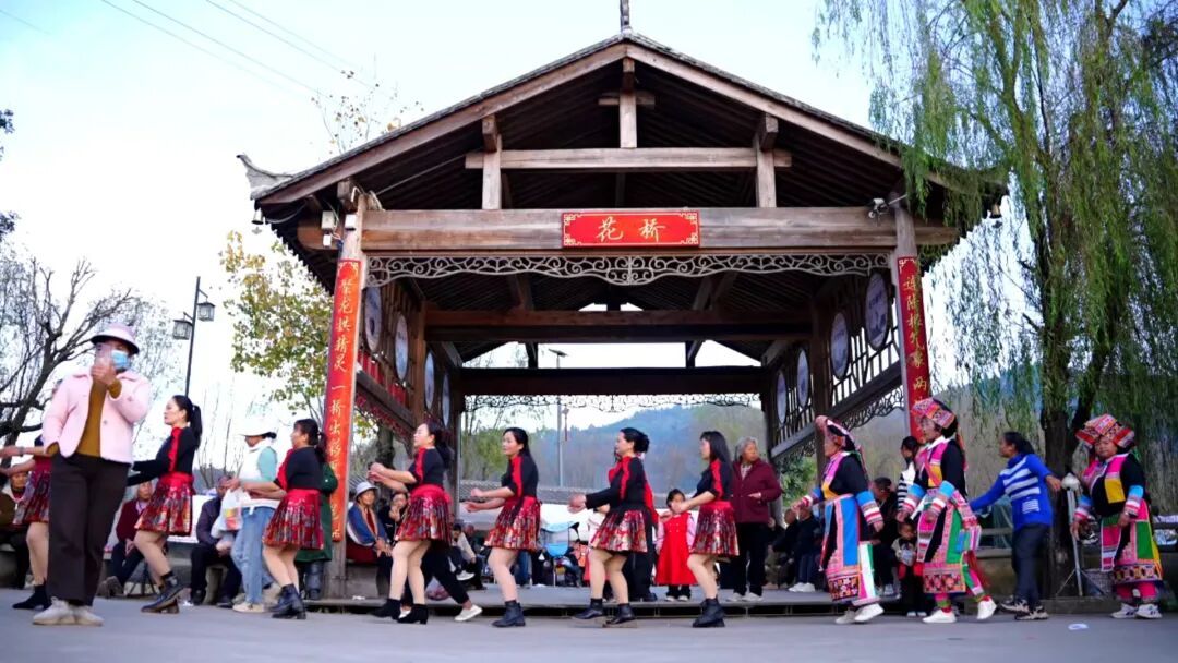 月亮爬上柳梢,三弦声起,群众踏歌起舞。廊桥上“风调雨顺”“国泰民安”的文字格外醒目,大花桥晚市的灯火,映照着平达乡村振兴的美好未来。