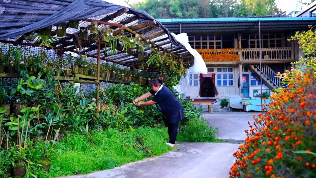 如果说直播是“加速器”,那么庭院经济就是“蓄水池”。在“中国紫皮石斛之乡”龙陵县,平达乡是全县较早尝试石斛花卉直播和发展庭院石斛的乡镇。张家坡小组的杨蓉梅就是其中一员,她见缝插针将自家庭院种满了石斛花卉,目前种了6个品种,其中鼓槌石斛和球花石斛销量最高,“因为容易成活而且开花较多,消费者十分喜欢。”说到销售额她腼腆地笑了:“今年有两三万元吧。但很多还舍不得卖出去,要养到最好的状态才行,我们直播都是一物一拍,客户看到什么收到的就是什么,所以很少有退换货的情况。”