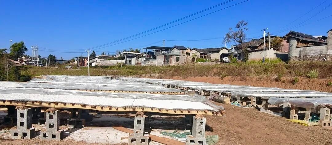 为提升产业附加值,龙江乡推进茯苓初加工环节建设。在张明达新建的初加工厂内,十多名村民从事茯苓清洗、去皮、切制、晾晒等工作,村民孙明秀手脚麻利地将切好的茯苓块均匀铺上晾架。