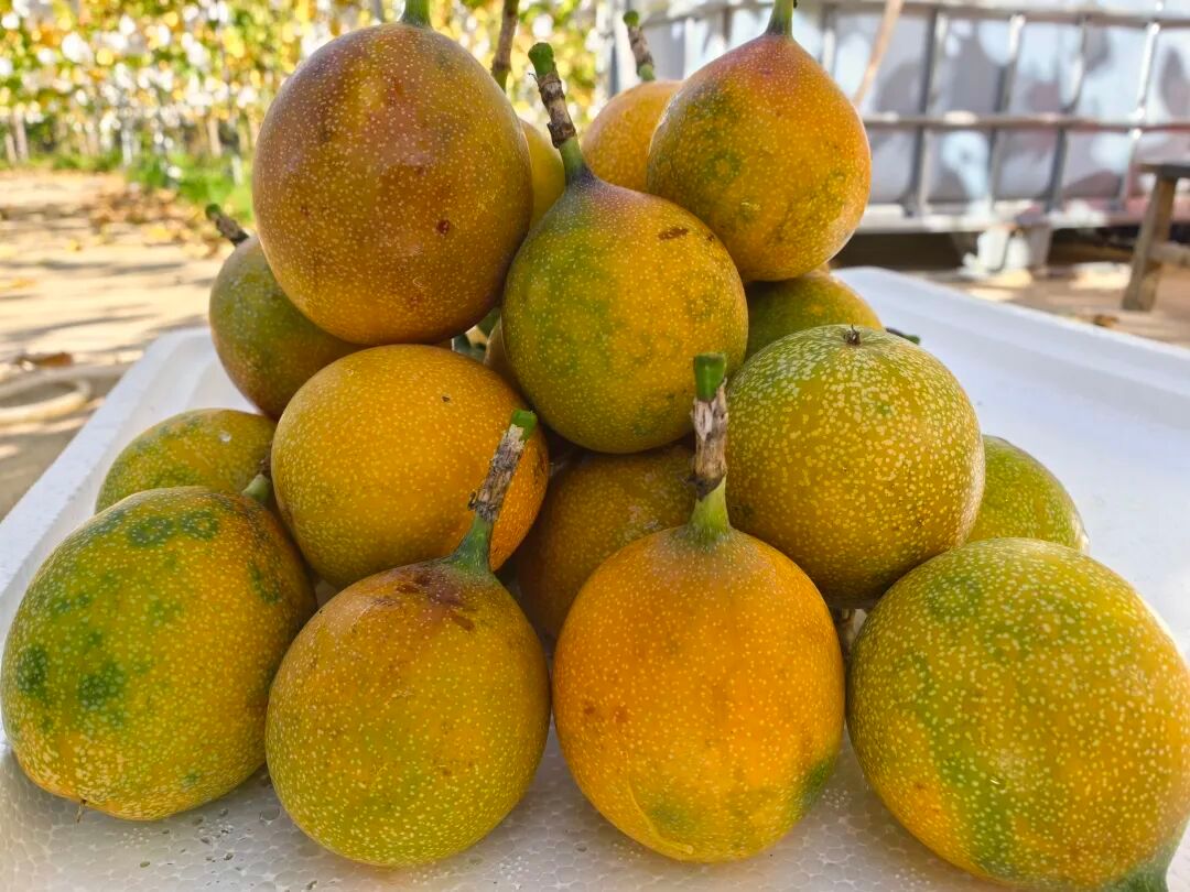 作为西番莲科的一员,热情果在未成熟时与本地常见的西番莲形貌相似,成熟后却呈现出独特的风姿:金黄耀眼的外皮、馥郁扑鼻的香气,果肉甜蜜爽口、风味独特。一上市就凭着好品质成了市场上的“抢手货”,常常供不应求!