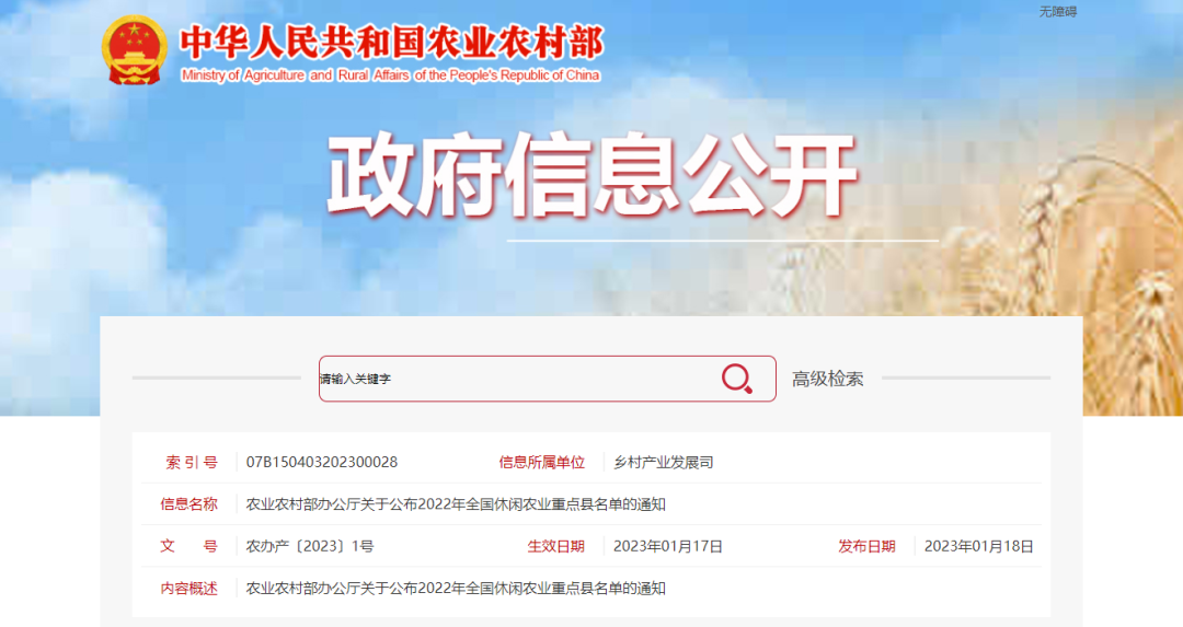 《关于公布2022年全国休闲农业