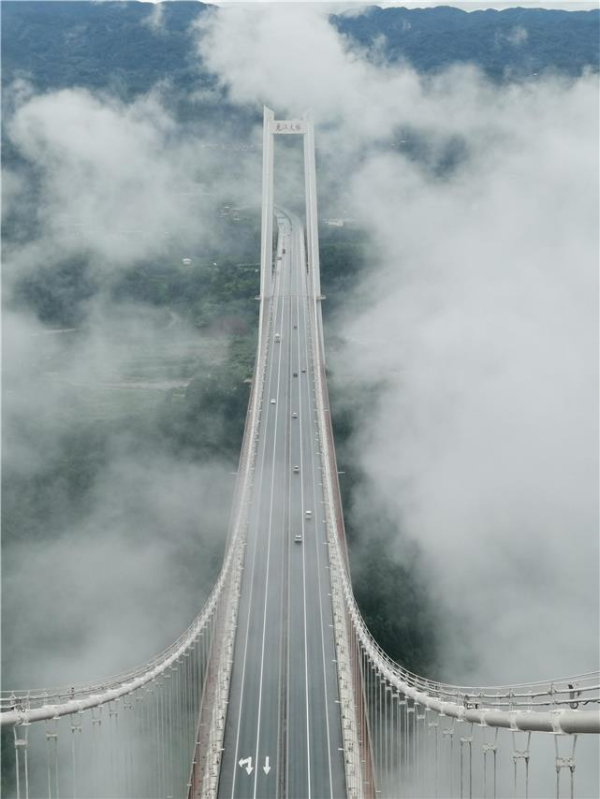 龙江特大桥是云南省首座特大跨径钢箱梁悬索桥,主跨1196米,同时也是亚洲最大山区最大跨径的钢箱梁悬索桥。一座桥,结束了龙陵邦焕与腾冲五合两岸“难通”的历史,带给两岸群众的则是不一样的便利生活。