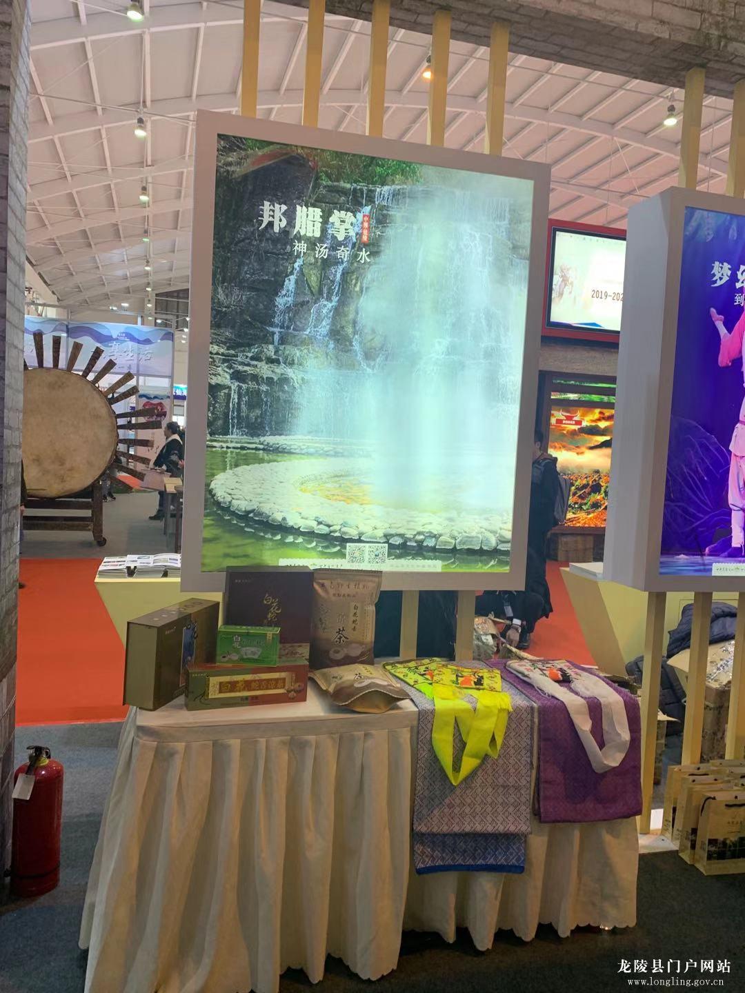 本届旅交会,龙陵共设有展位展台3个、扶贫展位1个,展示展品20余件、特色商品10余件,发放《龙陵宣传册》《龙陵傈僳族服饰》《龙陵县非物质文化遗产保护名录》《神汤奇水》等纸质宣传品2000余册。