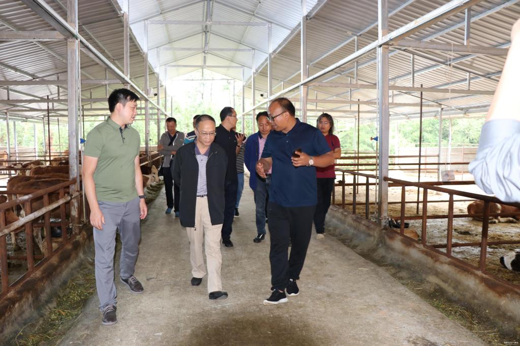 在橄榄寨村,代表团一行走进龙陵县润达农业开发有限公司肉牛养殖基地参观肉牛养殖场,并与基地负责人亲切交谈,详细了解肉牛养殖基地建设规模、运营模式、销售渠道、农户分红等情况。