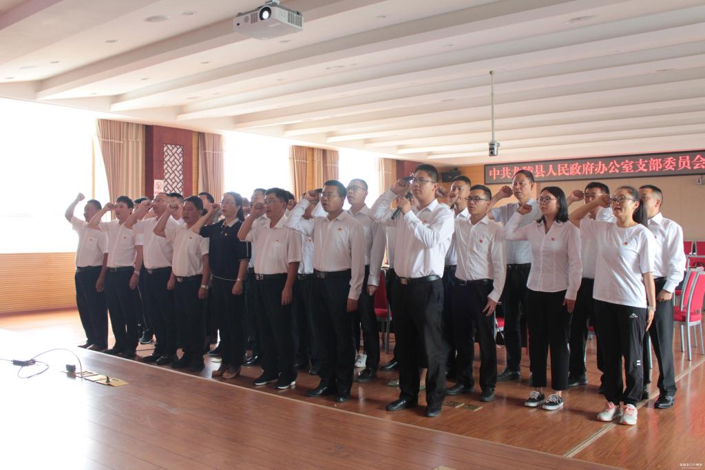 为抓好“不忘初心、牢记使命”主题教育,进一步增强党组织和党员的凝聚力和战斗力,激励干部职工继承和发扬党的光荣传统,近日,县人民政府办公室党支部召开党员大会,隆重庆祝中国共产党成立98周年。支部全体党员参会,县人民政府县长杨邵燕,副县长杨加祥、赵兴灿、李永、付伟斌以普通党员身份参加。