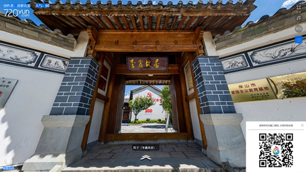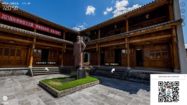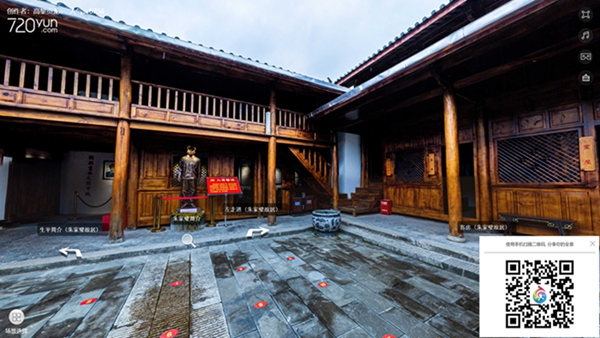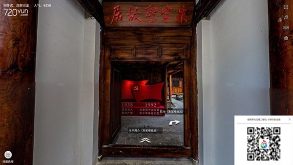“龙陵红色地标VR实景体验”之一:中国云南地方组织创始人——李鑫(故居)。扫描二维码进入VR页面后,就可以用手指滑动随意选择参观场景。主要包括院内李鑫铜像、李鑫故居堂屋、沿着古香古色的实木楼梯进入二楼展厅。展厅有实物展、图片展、影像展等,按李鑫等云岭建党先锋旗手追求革命道路的时间顺序分为前言、少年立志、云岭星火、云南党建、困境拓荒、锡山播火、血洒滇南、薪火相传、后记几部分组成。