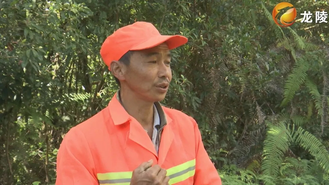 46岁的龙江乡勐外坝村村民廖永谷时常穿着橘红色的护路服,带着锄头、铲子等工具,沿着乡村公路忙碌,作为龙畅公路养护专业合作社专职护路员,他管护的这条路宽4.5米,全长6公里。他说,“我们主要就是搞沟道清洁,路面整洁,我们为了保护家乡的道路,要给它清洁,出进人员要看到美丽风光,我们的路尽量去养护好,我们也尽量做好。”