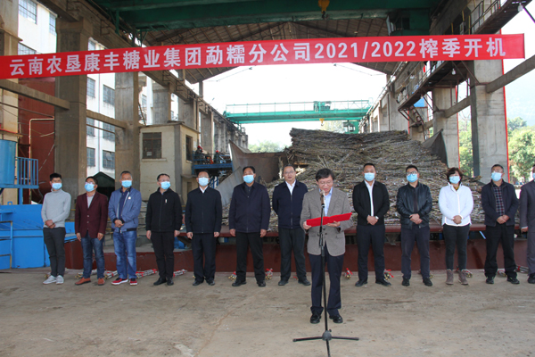 1月16日,龙陵县康丰糖业勐糯分公司举行2021/2022榨季开机仪式。云南省糖业协会理事长邓毅出席开机仪式并宣布开机生产。