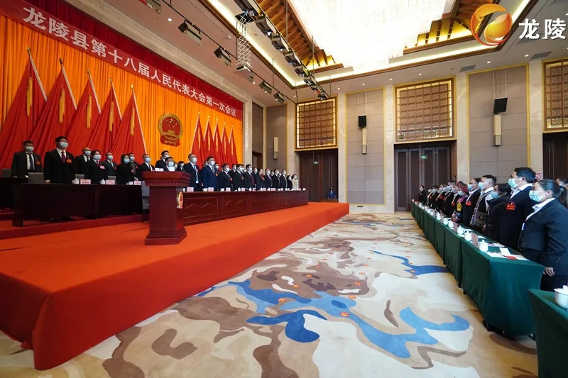 上午11:00,大会圆满完成各项议程,全体人员起立,奏唱中华人民共和国国歌,龙陵县第十八届人民代表大会第一次会议胜利闭幕。