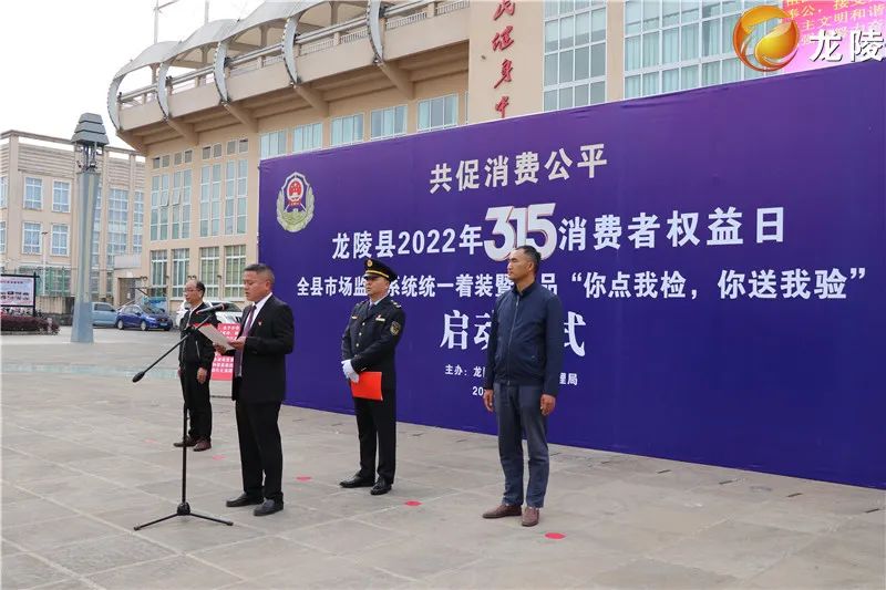 在第40个国际消费者权益日来临之际,龙陵县举行2022年消费者权益日—全县市场监管系统统一执法着装暨“你点我检”“你送我验”活动启动仪式。