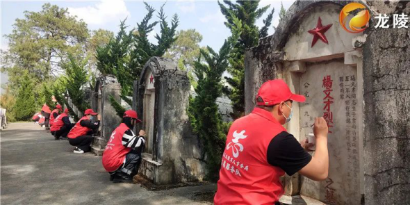 活动中,20多名志愿者自觉佩戴口罩,穿上志愿服务红马甲,手拿扫帚、铁铲、抹布、画笔,仔细清扫陵园里的枯叶杂草、擦洗烈士墓碑,为墓碑“添色”。志愿者们身体力行、冲锋在前,一会儿“描红”、一会儿铲垃圾,忙得不亦乐乎。经过大家的共同努力,烈士陵园焕然一新。