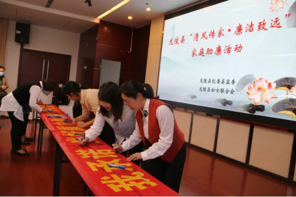 “作为一名家庭成员,我积极响应县纪委监委、县妇联‘清风传家·廉洁致远’的倡议,我承诺:不接受有碍配偶公正执行公务的礼金、礼品和有价证券,切实做到洁身自好,拒腐不沾……”在龙陵县国际家庭日“清风传家·廉洁致远”家庭助廉活动上,家属们郑重并坚定地在家庭助廉承诺书上签下了自己的名字。