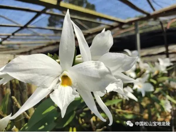 石斛花里难得的纯白,像个着白色裙装的少女飞舞着衣袖。