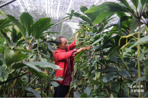 黄连河村于2012年开始试种重楼,2016年大量发展种植重楼。目前,岔河小组有十多户种植重楼,从开始的两三亩发展到30余亩,按往年均价预计产值200多万元。罗家礼就是其中一员,通过多年的摸索,从当初的2亩多扩种到现在7亩多,品种也增加到六七种。他不仅种植重楼,还种了10多亩的铁皮石斛,每年收入达到三十万元。