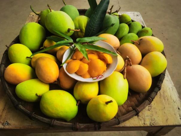 果香味。龙陵县勐糯镇、腊勐镇、碧寨乡、木城乡因地处怒江沿岸,典型的亚热带季风性立体气候和丰富的土地资源为各类水果种植提供了优良条件。勤劳的农民在这片肥沃的热土上种植了芒果、火龙果、百香果、西瓜等瓜果类作物,每年的夏天,不少时令水果争“鲜”上市,为炎热的夏季带来一丝清凉。果园里、集市上,瓜果飘香,那是龙陵夏天甜蜜的味道。在勐糯社区的果蔬交易市场里,工人们热情高涨地将金灿灿的大芒果分拣、打包、装箱,然后发往全国各地。龙陵的夏天果香四溢,有沁人心脾的芒果香,有皮薄汁美的西瓜香,有清爽可口的百香果香……龙陵的夏天果真有点“甜”。