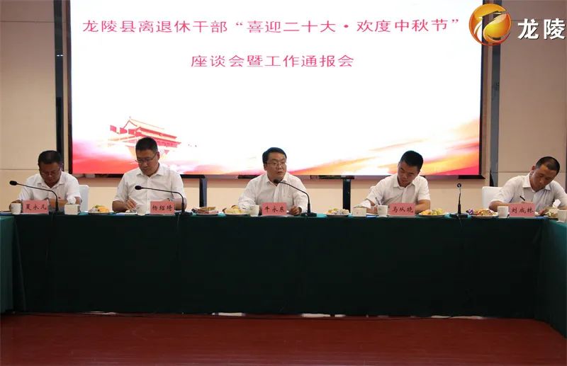 9月8日下午,龙陵县召开离退休干部“喜迎二十大·欢度中秋节”座谈会暨工作通报会,向离退休老干部通报全县2022年上半年经济社会发展情况和巩固拓展脱贫攻坚成果同乡村振兴有效衔接情况,认真听取老干部们对全县经济社会发展及老干部工作的意见建议。县委书记、县委老干部工作领导小组组长牛永东主持会议并讲话。