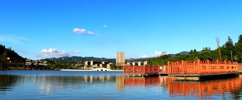 文化之湖。一方水土孕育一方文化。藏在湖旁密林深处的楼阁和亭子,隐隐讲述着龙陵这座山城的多彩文化和历史。楼阁长亭上写着“孝、忠、信”等内容,突出中国的传统文化和地方特色文化的传承,这些优秀的传统文化将影响我们的言行举止,成为我们的行为准则和生活习惯。