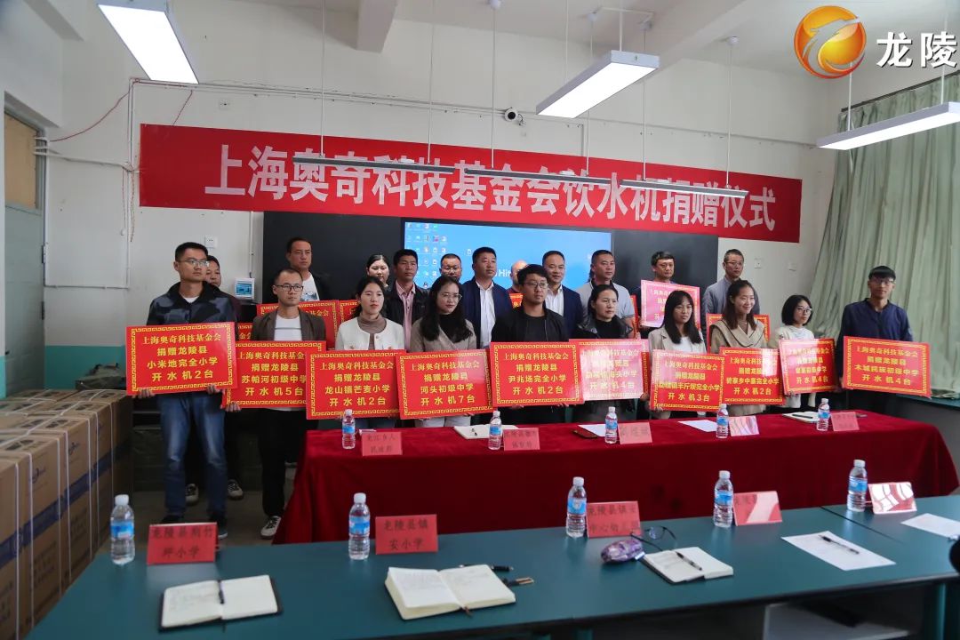 11月4日,上海奥奇科技基金会向龙陵县18所学校捐赠75台开水机捐赠交接仪式在龙五中进行,县委常委、县人民政府副县长周煜斌向18所学校代表进行了交接。