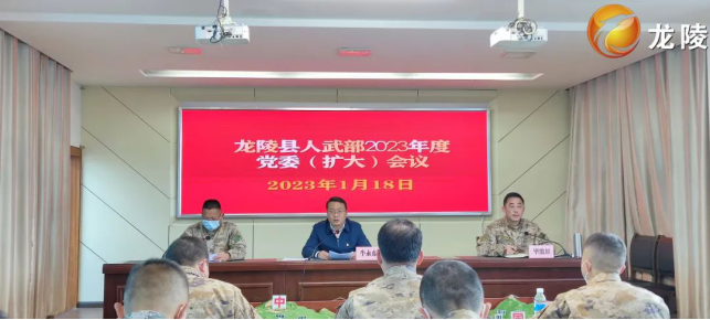 1月18日下午,龙陵县召开县人武部2023年党委(扩大)会议,传达学习上级会议精神,总结2022年全县党管武装和国防后备力量建设工作情况,分析存在的困难问题,谋划安排2023年工作。县委书记、县人武部党委第一书记牛永东出席会议并讲话,县人武部党委书记、政委毕戬旭作党委工作报告,县人武部党委副书记、部长肖华辉传达学习省军区、保山军分区党委全会精神,县人武部党委委员、各乡镇专武干部参加会议。