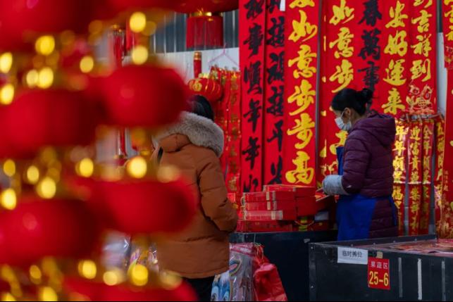 在卖春联的摊位上,许多市民正忙着挑选春联、灯笼、窗花、红包等。市民段金仙挑了一副“新春大吉”的对联,看着大气厚重的字体,她高兴地说:“希望来年‘福旺财旺运气旺,家兴人兴事业兴’,再买上一对大红灯笼挂起来,企盼未来的日子红红火火!”