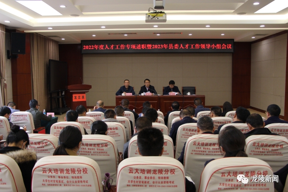 3月6日,龙陵县召开2022年度人才工作专项述职暨2023年县委人才工作领导小组会议,深入学习贯彻习近平总书记关于人才工作的重要讲话精神,全面贯彻落实中央、省委、市委人才工作相关会议精神,总结2022年工作,研究部署2023年工作。县委书记、县委人才工作领导小组组长牛永东主持会议并讲话,县委副书记、县长李永标,县委常委、县委组织部部长刘成林出席会议。