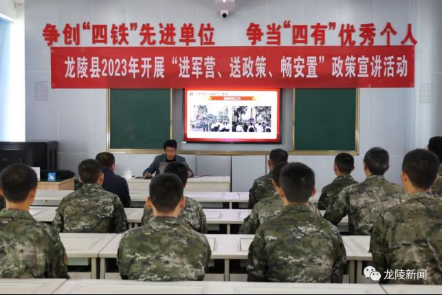 近日,龙陵县退役军人事务局走进驻龙部队为官兵们开展政策宣讲活动,通过专题宣讲、现场答疑等方式,为退役士兵安置就业顺利开展打下坚实基础。