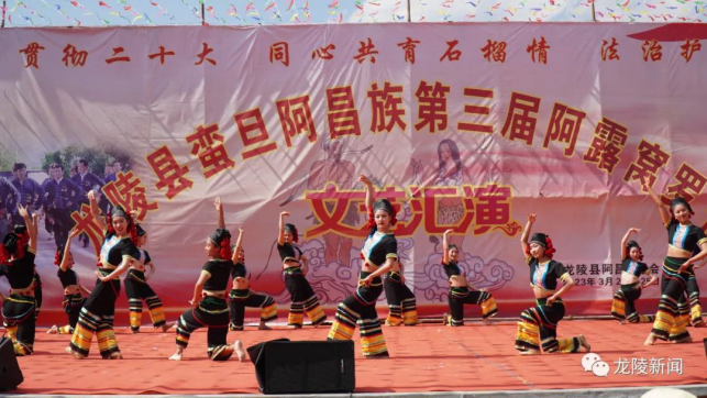 3月25日下午,文艺汇演在腾冲市新华乡阿昌族代表队的《舞狮》表演中拉开帷幕。随后,来自德宏州梁河县、保山学院、龙陵县文化和旅游局以及当地阿昌族代表队带来的《非遗展示》《腊鹫崩》《石榴结籽粒粒红》《阿昌族原生态窝罗舞》《阿昌不忘党恩情》等民族风情浓郁的节目轮番上演。