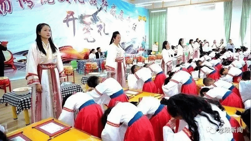 镇安镇中心幼儿园园长李素艳说:“‘开笔礼’是我国古代就有的一种启蒙学习仪式。今天我们幼儿园举行第一届‘开笔礼’毕业典礼,目的就是想通过这种庄重的仪式,让将要进入小学的小朋友真正感受到入学是人生中的一件大事,是开始学习,是走向成才的起点,以此激励孩子们珍惜读书机会、勤奋学习。”