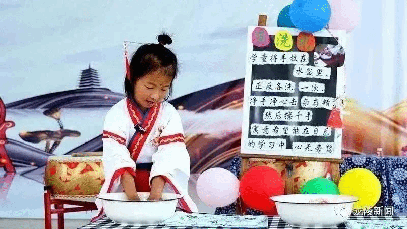 大班小朋友陈绍颖说:“这就是盥洗礼。老师告诉我们从小养成爱卫生、干净的好习惯。”