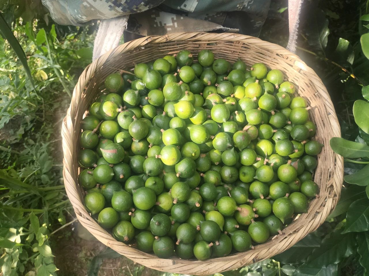 “我们家种了30棵坚果,现在已经进入盛产期,每棵差不多有50公斤的产量,按照市场价青皮果每公斤7元折算的话,每棵坚果树的产值就是300多元,据说产果期能长达好几十年,那么这些果树就真的是‘摇钱树’了。”村民周荣方夫妻俩在坚果地里忙碌着,上树摘果,分拣入筐。夫妻俩还说,今年坚果长势比去年好,颗粒饱满,收入会有1万多元。