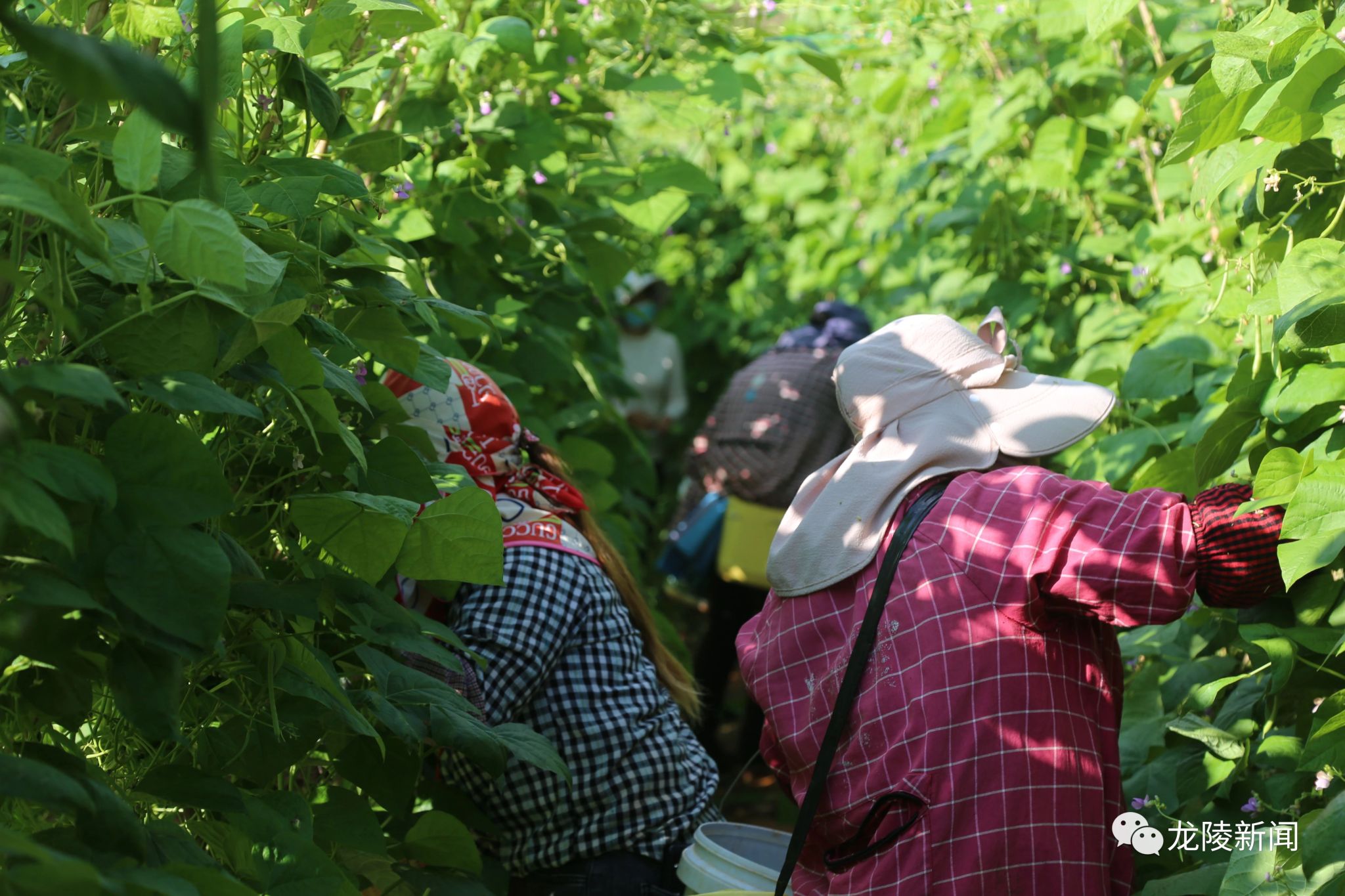 初冬时节,走进龙陵县镇安镇,农田里郁郁葱葱、长势喜人的无筋豆随处可见,脆嫩待摘的豆角挂满藤蔓,田间地头里,豆农们忙着采摘、分拣、搬运,一派丰收繁忙景象。