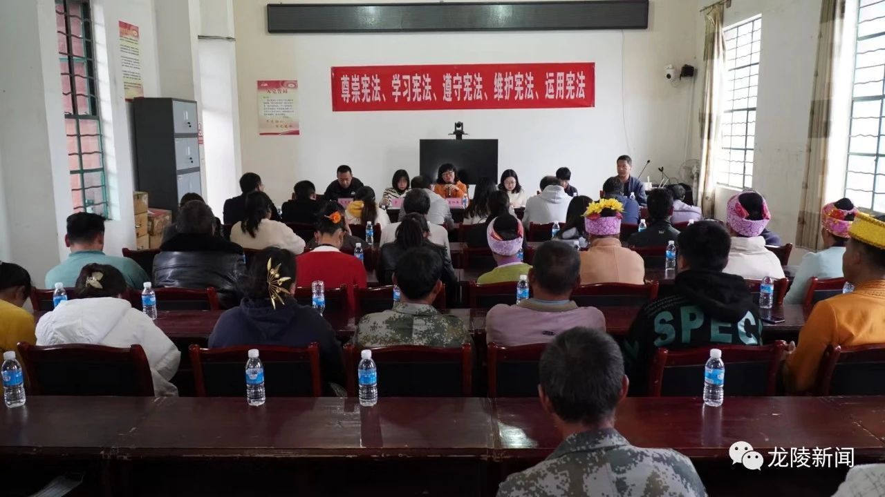 12月7日,龙陵县在开展“普法强基·宪法宣传周”活动中,联合云南省生态环境厅在龙江乡弄岗社区傣族村寨开展了一场别开生面的“双语普法”宪法宣传民族村寨行主题活动,以“傣汉”双语的形式,将法律知识送进少数民族村寨。