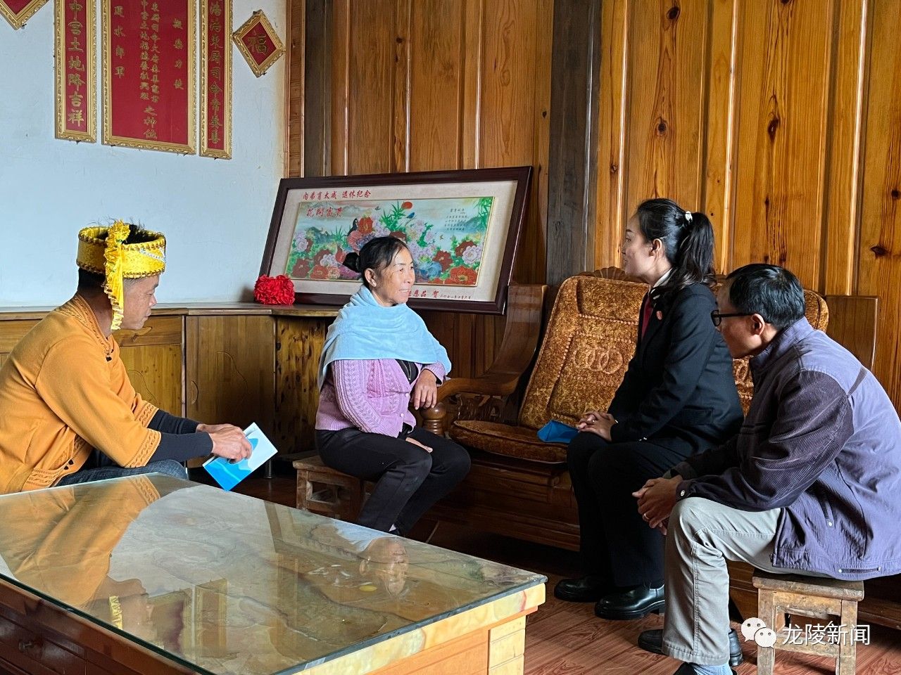 在与群众交流时还针对实际案例进行具体的法律指导,精准送法上门,确保在场村民理解并掌握重要的法律信息,让普法宣传既有深度又有温度。龙江乡弄岗社区村民康万兰开心地说:“今天普法队来我们家普及法律,我们懂得了一些法律知识,今天学了以后,我们以后遇到事情要学会用法律保护好自己。”
