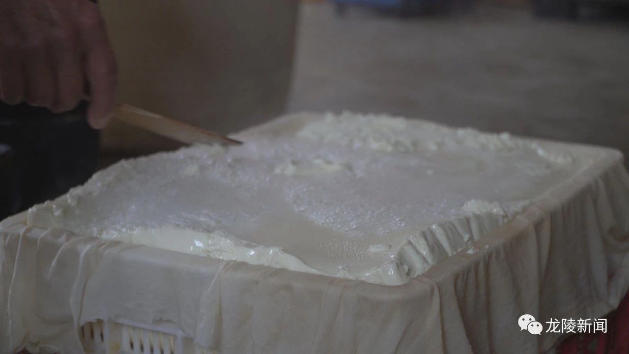 龙陵县镇安镇的豆腐是周边出了名的“细腻、软糯”,深受消费者青睐。在镇安社区很多群众以做豆腐为生,有的是一年四季都做,有的是冬日旺季才做。张楠芳夫妻长年累月做豆腐已有30个年头,每天晚上把黄豆泡发后,再把黄豆加水打成豆浆,把豆浆煮开煮透,加入食用石膏静置降温后便成了豆腐。