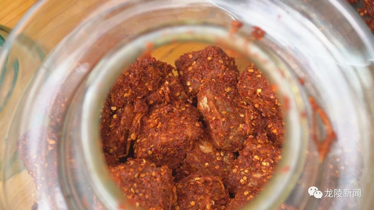据张楠芳介绍,最近的臭豆腐都是“大单”出售,趁着腌腊“黄金”时节,村民们买回去多数用于腌臭豆腐。镇安镇镇南社区村民杨彩云每年都会腌上十斤左右的臭豆腐,今年也不例外。买回来的臭豆腐直接放入辣椒面、茴香籽、草果面、料酒、盐等佐料拌均后,再放到瓶罐中就制作好了。腌臭豆腐的方式可油可素、时间可长可短,根据个人喜好决定。“我们一家子喜欢吃素豆腐,不放香油的叫素豆腐,就腌就吃,七八个月后更入味一些。”镇安镇镇南社区村民杨彩云说。