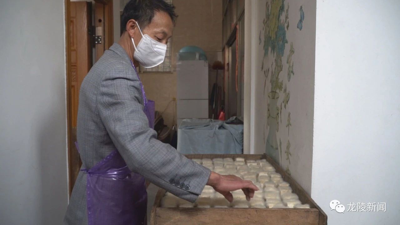 制作出的豆腐一半由妻子拿到市场销售,另一半张楠芳继续加工制作成臭豆腐。将豆腐切块放入工具盒内,用笼布盖上放置阳光下或暖气房,几天后长出毛便可食用了。臭豆腐闻着臭吃着香,还含有丰富的植物性乳酸菌,具有调节肠道功能,深受消费者的喜爱。目前豆腐市价为每斤2元,臭豆腐每斤3元。