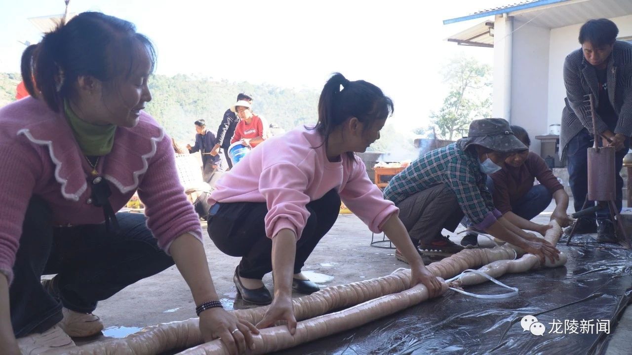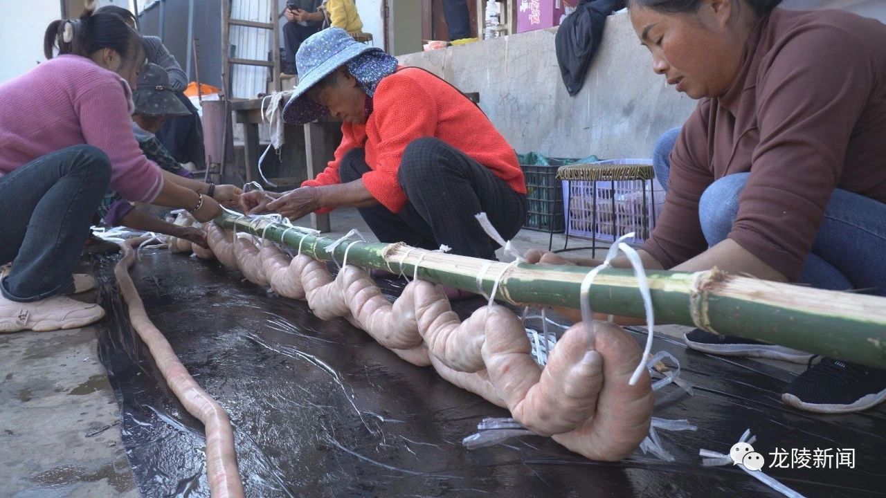 “我们这边每年家家户户都要杀猪,杀猪灌豆腐肠,一般就是三十斤豆腐加上十斤左右的肉,再加上各种香料,这种灌出来的豆腐肠口感又好又解腻。”龙陵县腊勐镇大龙村村民陈晓兰说。