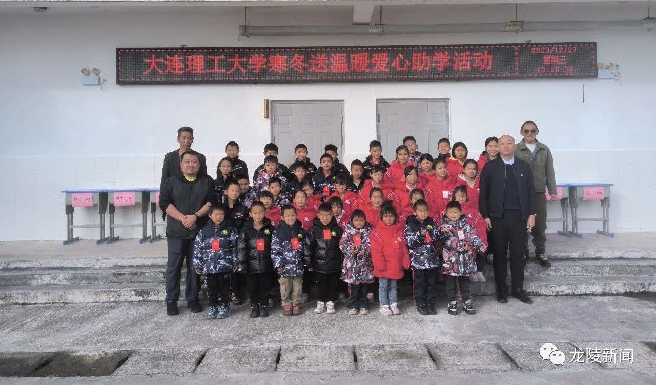 12月27日,大连理工大学驻龙陵县挂职干部,带着为山区家庭经济困难学生采购的40件羽绒服来到了所对口帮扶的龙山镇核桃坪完全小学,为寒门学子送上来自于大工的温暖。
