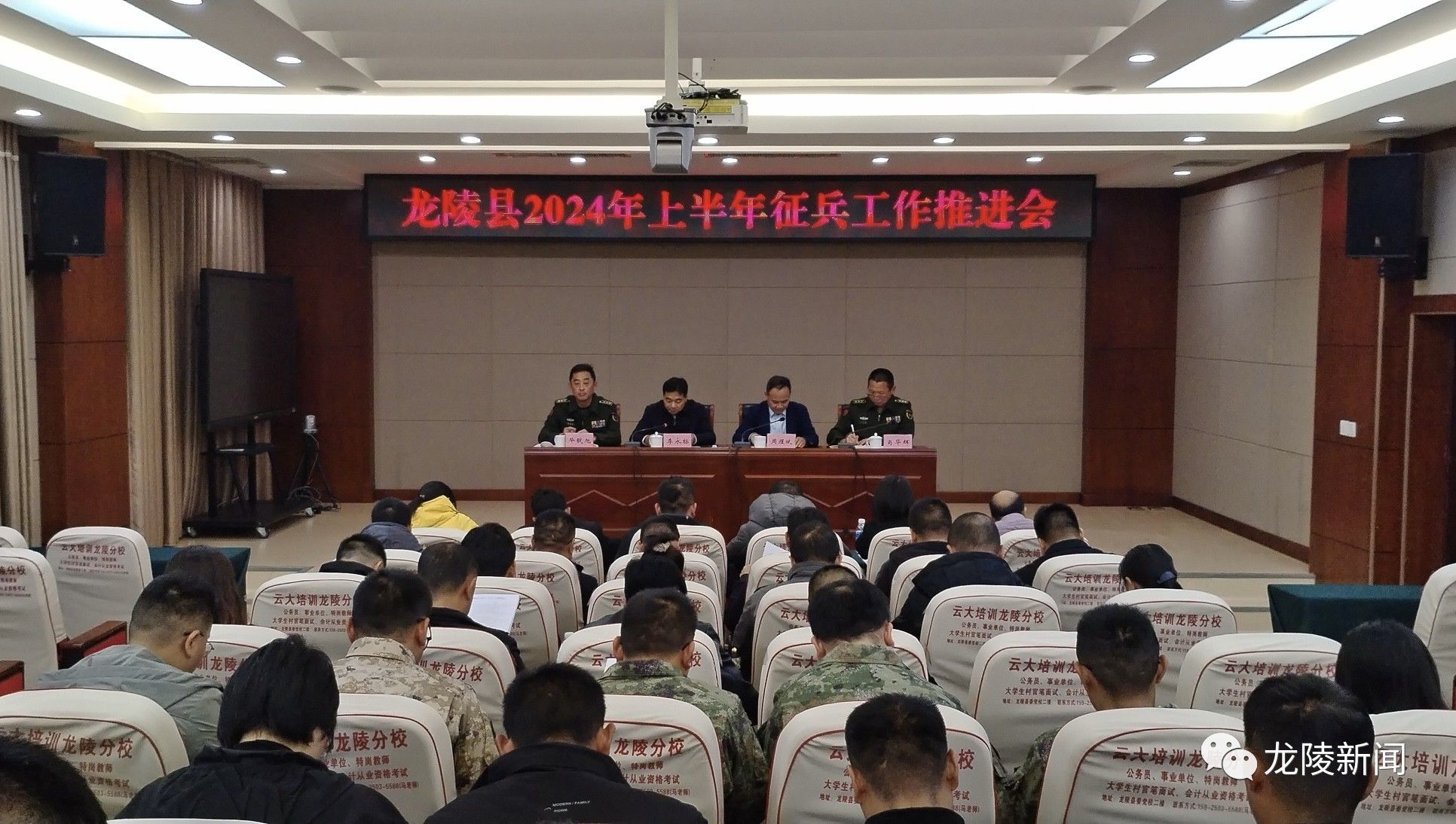 12月28日,龙陵县召开2024年上半年征兵工作推进会,总结2023年征兵工作,对2024年上半年征兵工作进行安排部署。县长、县征兵工作领导小组组长李永标主持会议,周煜斌、毕戬旭、肖华辉参加会议。
