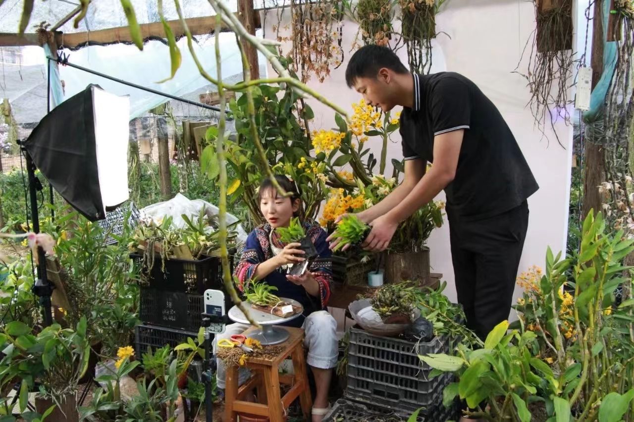 电商牵引,搭起“线上”营销网络。创新实践“企业+职校+基地+农户”发展模式,打造“职校育才、基地育苗、农户种植、企业回购、电商销售”的石斛花卉电商产业链,形成企业有收益、产业得发展、群众能增收的共赢局面。截至目前,全县共培育石斛花卉企业40余户,建成石斛花卉种植基地50余个、电商直播基地10余个,培育电商直播人才300余人,带动5000余人参与石斛电商产业发展;在电商平台开设网店90余个,年销售额达2亿余元。