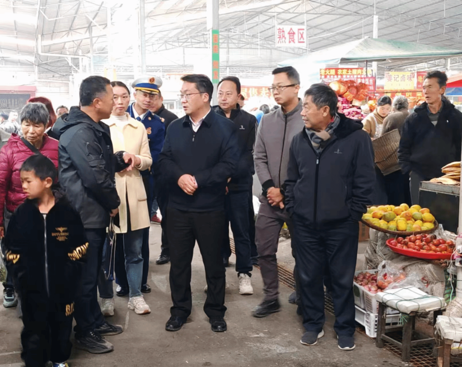 在农贸市场,检查组现场听取了相关部门负责人对春节期间市场保供稳价情况和消防措施落实及突发事件应急准备情况汇报,了解了蔬菜、肉食商品等生活物资价格、市场供应情况。强调要加强节日期间市场监管和市场供应,强化食品安全检查,切实维护市场秩序、保障食品安全,确保节日期间市场货丰价稳、群众消费安全舒心,全力营造安定祥和的节日氛围。