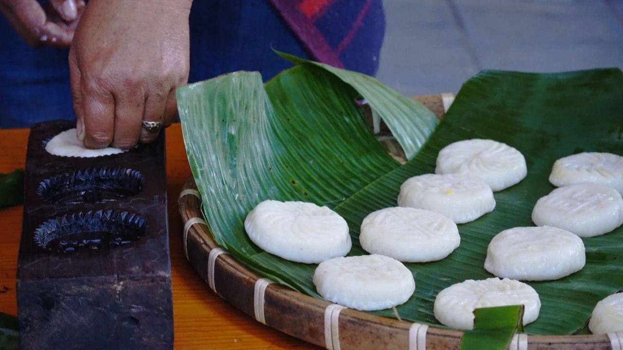 近日,躺在龙陵县腊勐镇大垭口社区新村的脚碓,开始咯吱、咯吱响动了起来。村民们在舂制一种本地的传统年货——粟米粑粑,粟米粑粑采用优质的糯米和本地种植的粟米两者混合搅拌均匀后,进行蒸煮和舂制,然后按压成大小不同的圆形粑粑块,当地人俗称粟米粑粑。“我们过年都会舂粑粑呢,因为舂出来的粑粑口感比较好,舂好粑粑去看亲戚朋友都会带着一点去,表示一家人团团圆圆呢。”龙陵县腊勐镇大垭口社区新村村民李菊兰一边用手按着粑粑块一边说道。用脚碓舂制的粟米粑粑,保留了糯米和粟米的清香味,吃到嘴里还有咀嚼粟米发出的啧啧声,让味觉和听觉都得到无比满足。