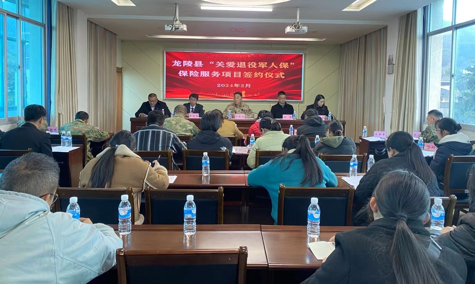 2月7日,龙陵县退役军人事务局与中国人寿保山分公司就“关爱退役军人保”保险服务项目进行签约。县委常委、县人民武装部政委毕戬旭出席仪式。