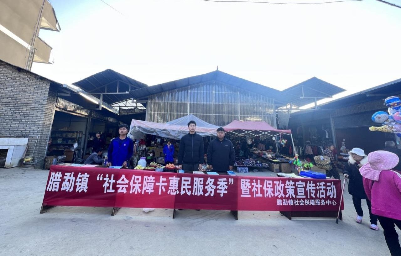 在腊勐镇集镇活动现场,通过设立咨询台、发放宣传资料等方式,为广大群众提供养老保险、社会保障卡、劳动保障维权等业务咨询服务,耐心解答群众提出的问题,帮助有需要的群众进行电子社会保障卡的申领、激活和社保待遇资格认证。
