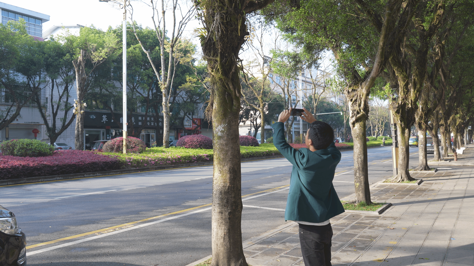 每天早上,龙华路上的商户郭广发开门的第一件事就是观赏店铺门口树上的石斛花,自2018年龙陵县以创建省级园林县城为契机,对县城区主干道行道树移栽了石斛30000余株以来,春来开门即见石斛花开的景象对他来说成了每天的赏心乐事。