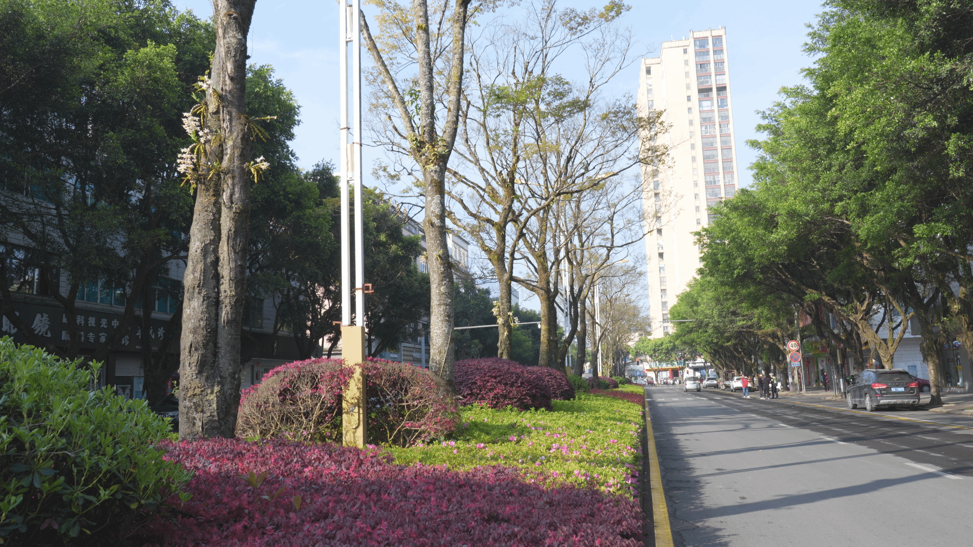 “县花”(石斛花)上“县树”(香樟树)作为龙陵县城镇绿化美化的重要举措之一,县城随处可见的绿植和赏心悦目的石斛花卉,形成了“四季有绿、常年有花”的城市街景。