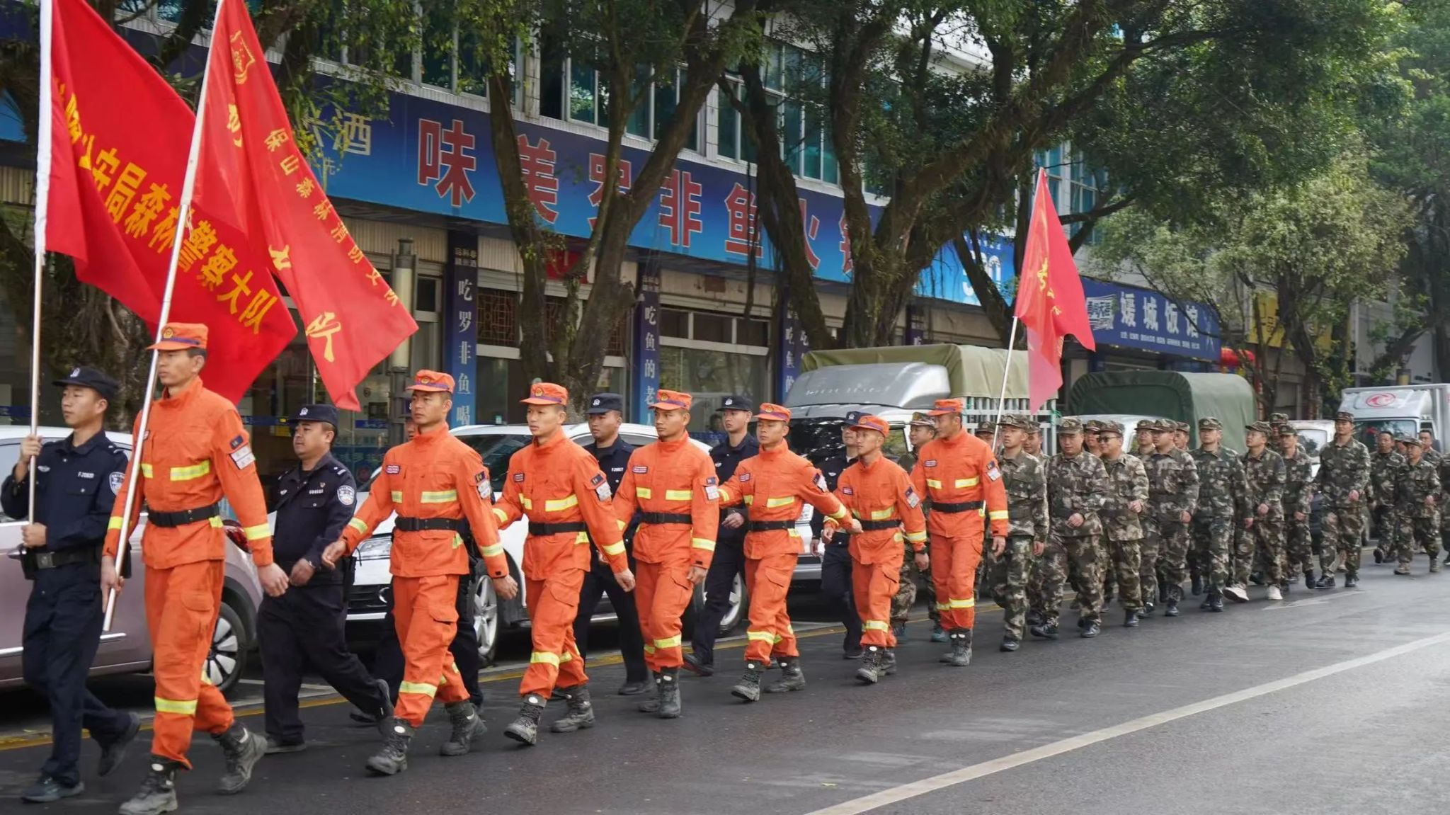 4月3日,龙陵县举行“无火清明”武装巡护联合行动启动仪式,全面筑牢森林防火底线。